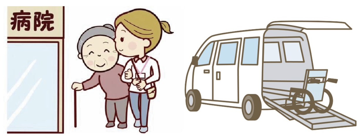 日常のお買い物や銀行、理美容院への移動をサポートします。